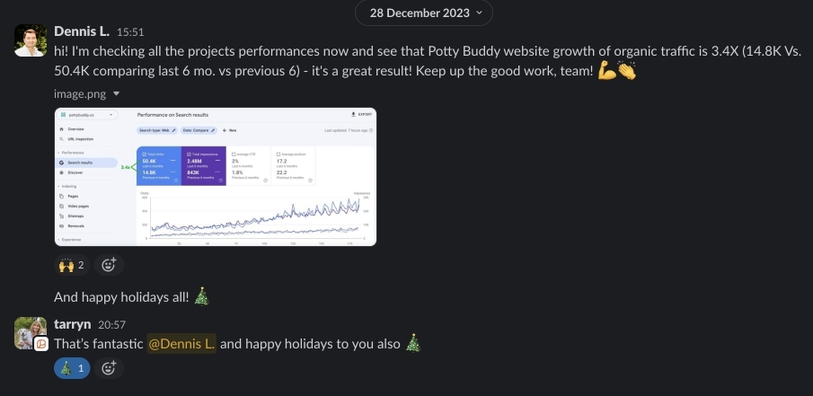 "...growth of organic traffic is 3.4X in 6 mo. - That's fantastic“